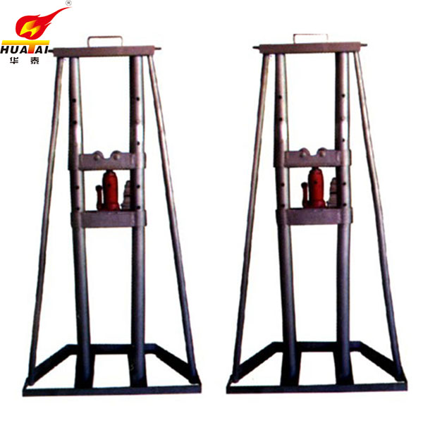 (4)電纜放線拖車放好千斤頂后,應先將重物稍微頂起一些,然后檢查千斤頂底部的墊板是否平整、 牢固,千斤頂是否垂直。如千斤頂受壓后,不平整、不牢固,千斤頂有偏斜時,必須將千斤頂落下經處理好后才可頂升。